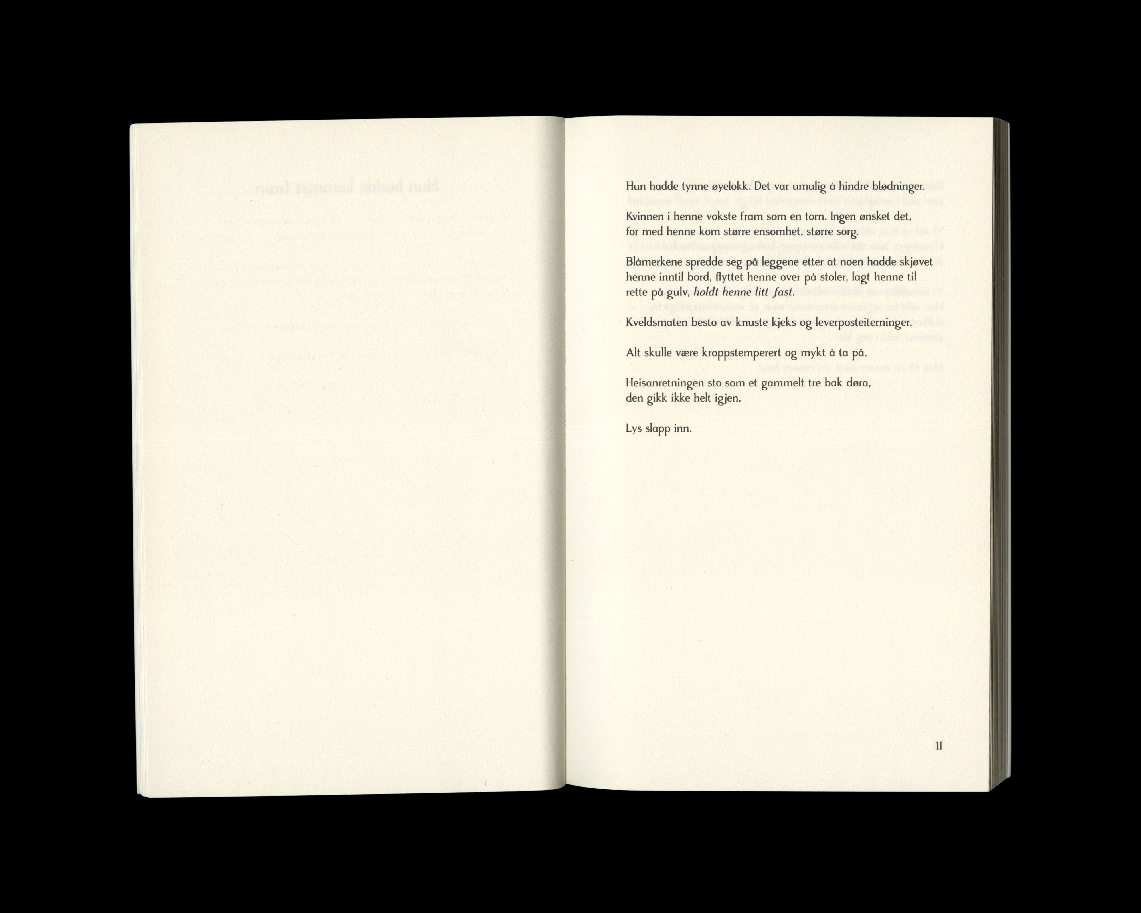 “One of the best young writers of Norway writes outstanding poetry about the weak and painful parts of the welfare state (...) This book makes a great impression, increasing by every re-read.”