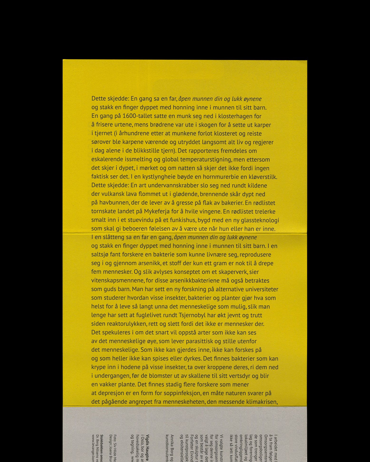 Non-fictionArtistic work for Stokkbakken care-center Åsen, Levanger municipality by Vigdis Haugtrø. Consultants/curators was Annika Borg and Lisa Stålspets and text written by Eivind Hofstad Evjemo
